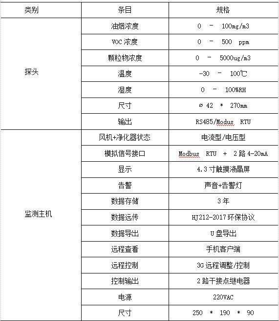 對油煙排污數(shù)據(jù)的監(jiān)測,包括油煙排放濃度,顆粒物,NmHc等數(shù)值采集監(jiān)測;同時對監(jiān)控風(fēng)機和凈化器的啟停狀態(tài)、運行數(shù)據(jù)進行監(jiān)測。